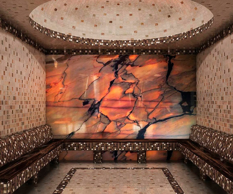 A hammam can be designed in various styles: minimalist stone architecture, premium onyx interiors, LED chromotherapy concepts or hotel-standard spa zones. The aim is always the same — to create a 100% humid environment with stable warmth, evenly heated surfaces and a luxurious visual identity.