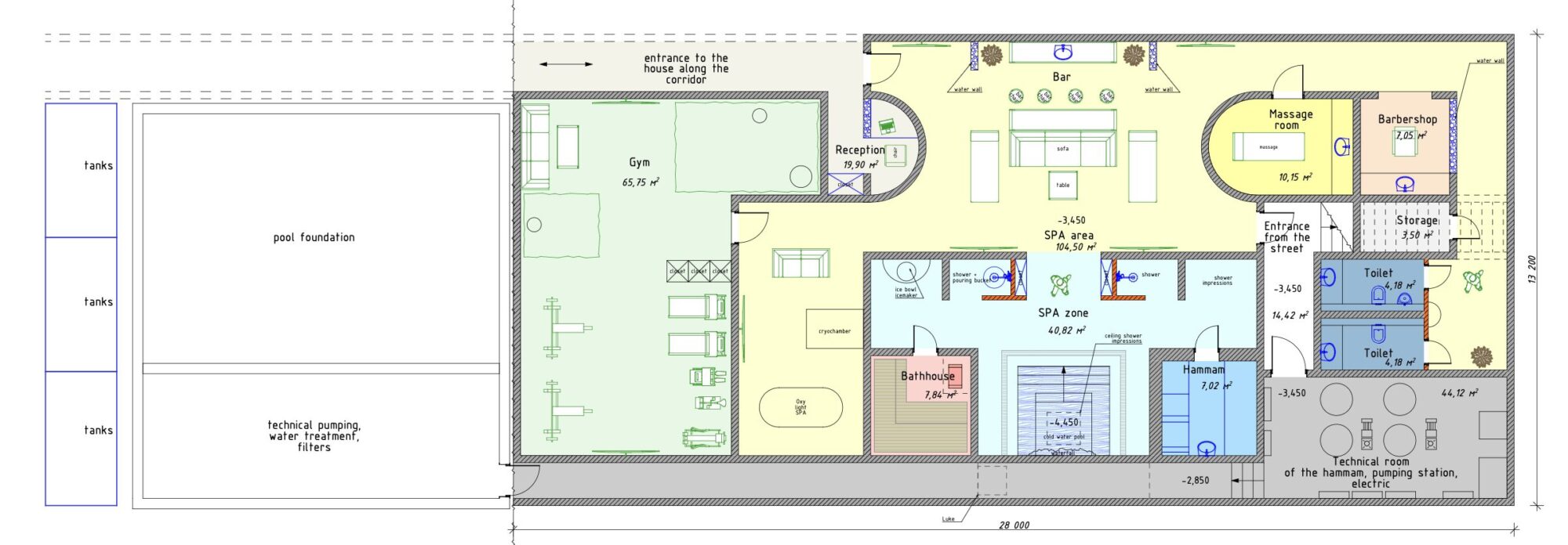 • Cryochamber, ice generator and experience showers for contrast therapy and vital energy.
